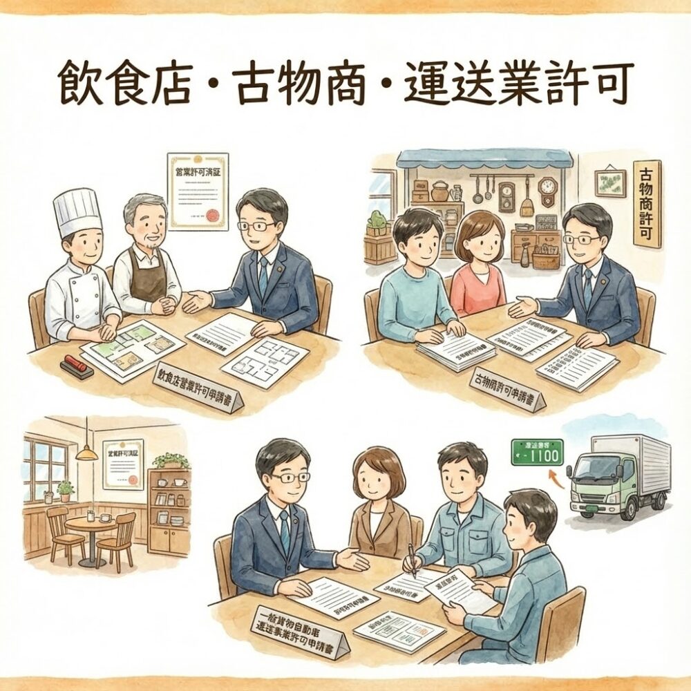 (1) 各種許認可申請 例:建設業、古物商、産廃、自動車関連、飲食店など